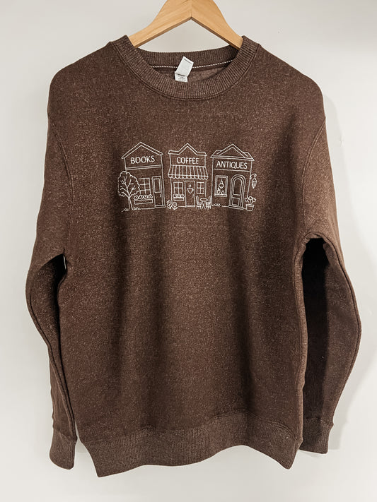 Books, Coffee, and Thrifting, Oh My! Embroidered Crewneck